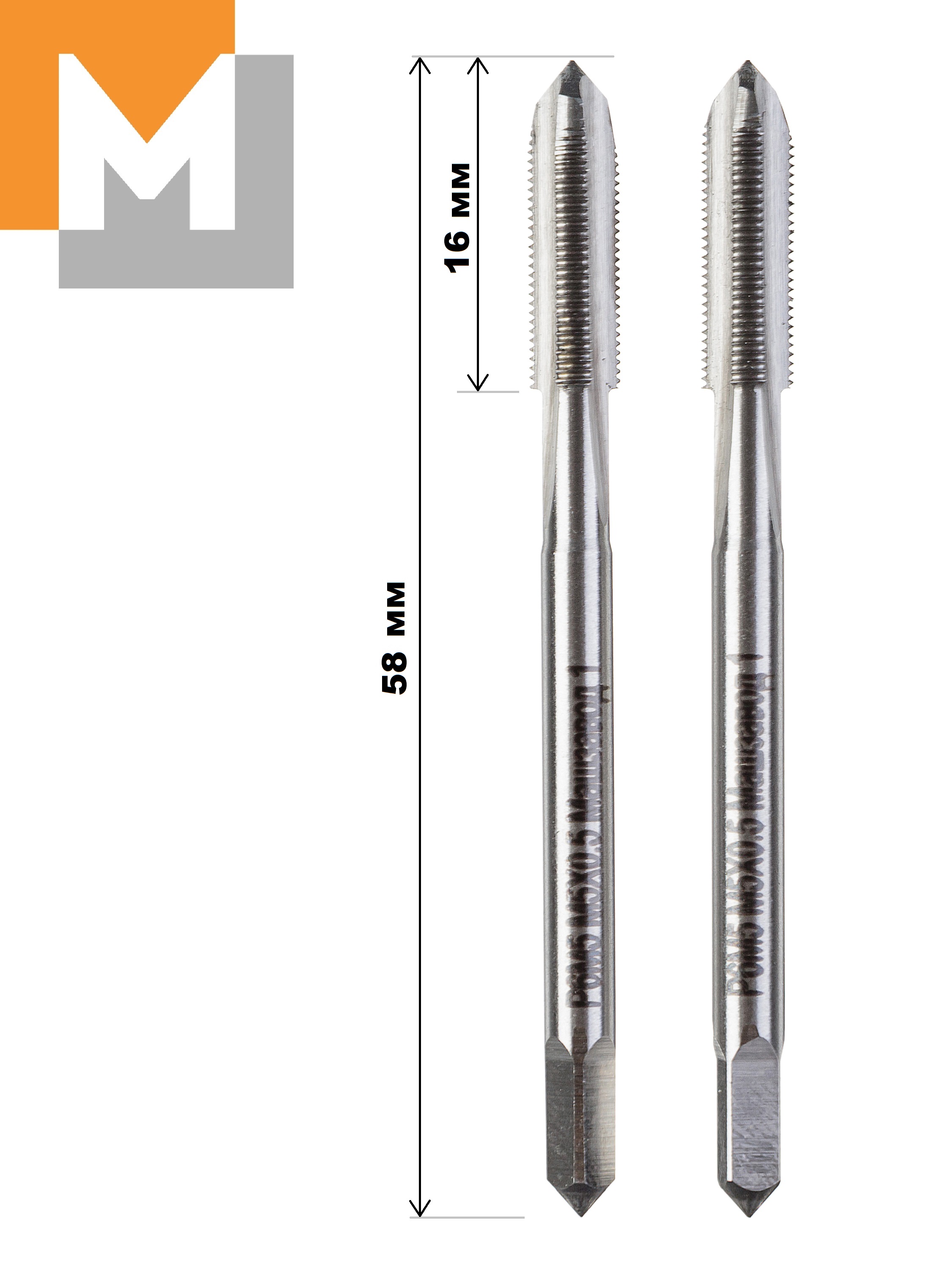 Метчик М5 машинно-ручной комплект из 2 штук Р6М5 производства "Машзавод 1" изготовлен по ГОСТ 3266-81. Метчик изготовлен из стали Р6М5, шаг резьбы мелкий (0.5 мм), твердость 63-65 HRC. Первый номер из комплекта имеет 4-5 заходных витка , что снижается нагрузку на режущую часть и уменьшает вероятность поломки метчика. Второй номер метчика имеет заходную часть 2 витка, что позволяет нарезать резьбу в глухом отверстии. Хвостовик проходной. Метчик производства "МАШЗАВОД 1" изготовлен из стали Р6М5, что подтверждено химическим анализом и предназначен для серийной обработки черных сталей, таких как СТ3. , 40Х, Ст45, и др. Допускается обработка нержавеющих сталей и термически обработанных сталях (до 30 HRC), но ресурс будет снижен.