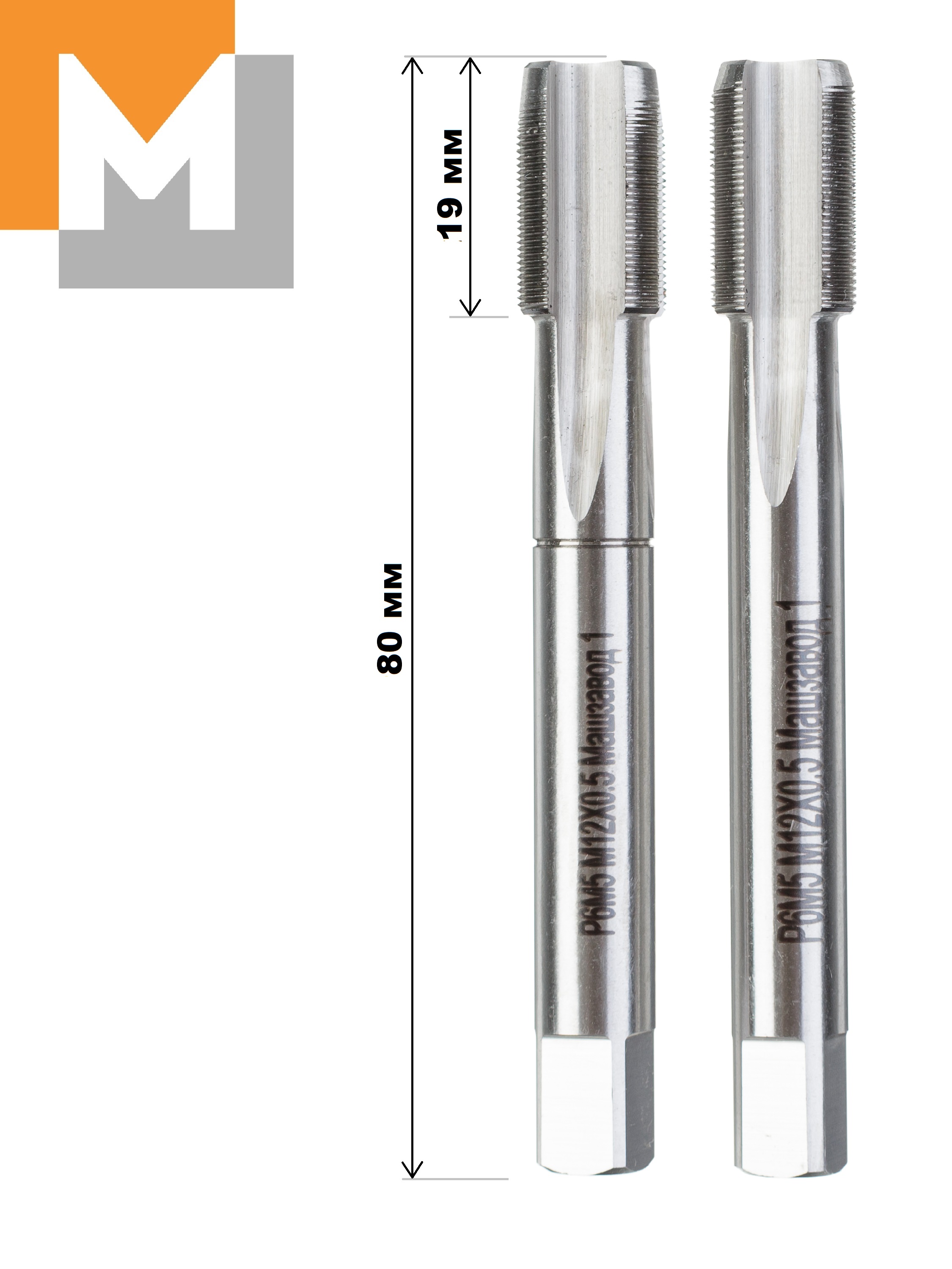 Метчик М12 машинно-ручной комплект из 2 штук Р6М5 производства "Машзавод 1" изготовлен по ГОСТ 3266-81. Метчик изготовлен из стали Р6М5, шаг резьбы мелкий (0.5 мм), твердость 63-65 HRC. Первый номер из комплекта имеет 4-5 заходных витка , что снижается нагрузку на режущую часть и уменьшает вероятность поломки метчика. Второй номер метчика имеет заходную часть 2 витка, что позволяет нарезать резьбу в глухом отверстии. Хвостовик проходной. Метчик производства "МАШЗАВОД 1" изготовлен из стали Р6М5, что подтверждено химическим анализом и предназначен для серийной обработки черных сталей, таких как СТ3. , 40Х, Ст45, и др. Допускается обработка нержавеющих сталей и термически обработанных сталях (до 30 HRC), но ресурс будет снижен.